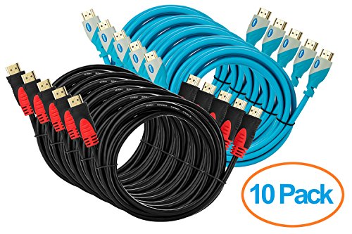 Pack of 10 - 10 feet High Speed HDMI Cable connects a Blu-ray player, computer, AV receiver, Apple TV, Roku streaming media player, cable box, Play Station 3, Play Station, Xbox One, 360, Nintendo Wii, Wii U or other HDMI compatible devices to your Ultra 4K TV (UHD TV), HDTV, monitor, or projector