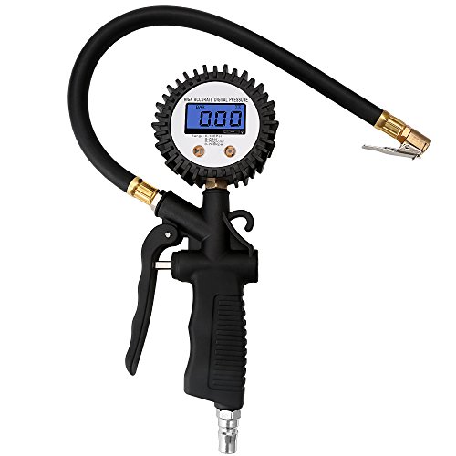 Geartronics Digital Tire Inflator Pressure Gauge with Air Chuck and Hose Air Pressure Gauge for Vehicle and Motorcycle 100 PSI