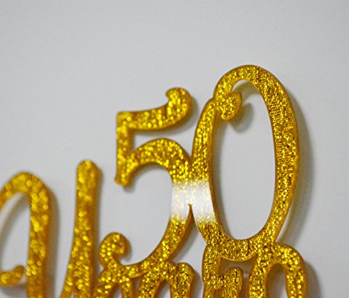 Firefairy(TM) 50 Years Blessed Acrylic Cake Topper,50 Birthday Party Decoration Supplies(Gold)