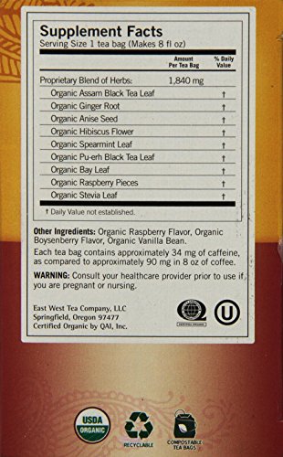 -. Feature : Supports Digestive Health and Energy / For millennia, Ayurvedic practitioners and herbalists throughout the world have used Ginger for its invigorating and harmonizing digestive qualities / This all-organic blend builds on this therapeutic tradition by combining Ginger with a unique blend of herbs, including Anise, Spearmint and energizing Assam and Pu-erh Black Tea Leaves