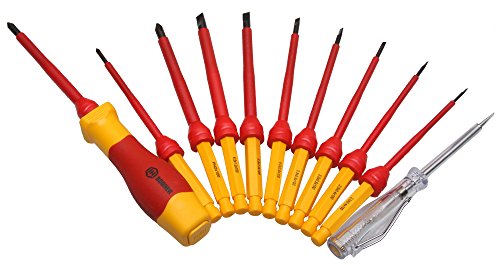 - Includes 7 Slotted blade 2.0x100,2.5x100,3.0x100,3.5x100,4.0x100,5.5x100,6.5x100mm 3 Philips blade PH0x100,PH1X100,PH2x100mm Voltage Tester 125-250V