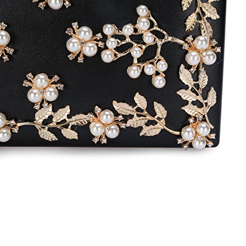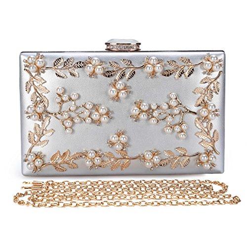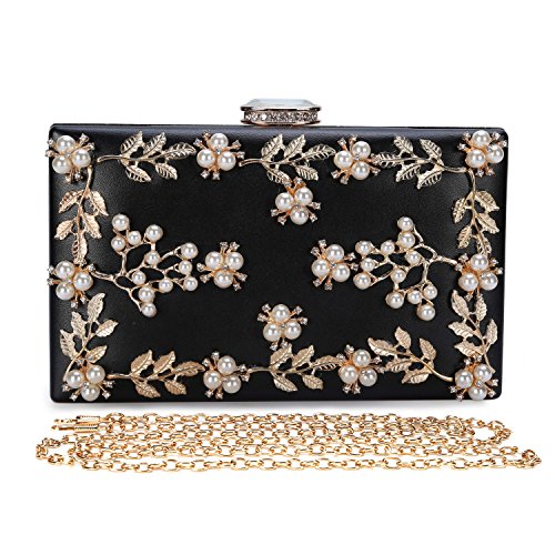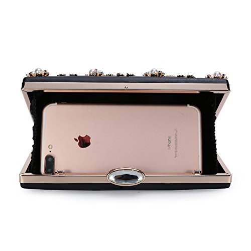 -. Feature : Material:-Superior metal frame construction with shiny and fashion pearl outside and soft satin lining. / Feature:Rhinestones heads with these elegant cascading pearl bead and patent leather cocktail purses. VERSATILE DESIGN Clutch by hand, tote or crossbody bag use with detachable chain about 48 inch length / SIZE - Approximate Dimension: 7.7 in (L) X 1.2 in (W) X 4.5 in (H), weight is 1.06LB. / CAPACITY - Ideal for holding essentials like keys,mirror for touch-ups, lipstick and a iphone 7plus. / OCCASION - Beautiful clutch bag is perfect for weekend, wedding, evening party, prom, cocktail various parties, night out or formal occasions and so on.