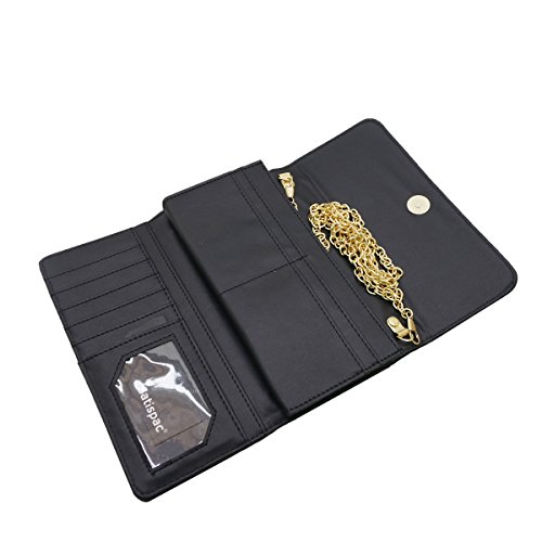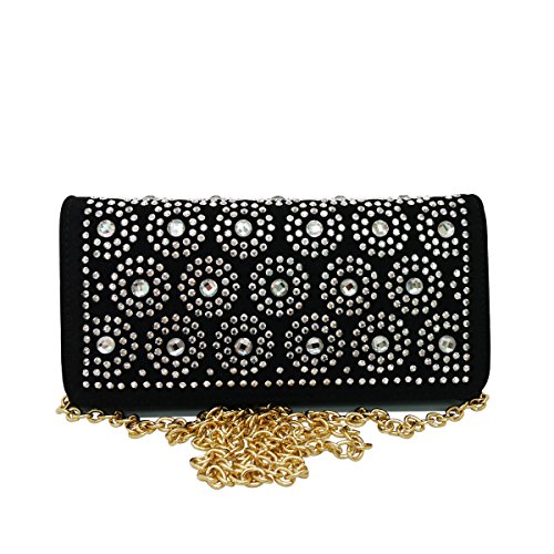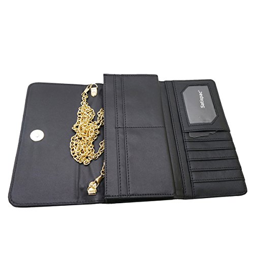 -. Brand : Satispac -. Department : womens -. Feature : Sophisticated Design Pattern of Rhinestones on Ultra Suede Front Panel / Useful Organizing Your Daily things with Sufficient Compartment / Size: L 7.5" x H 4" x W 1.2" / 11 Pockets for Card, 4 Pockets for Cash, and 1 for Coins / Detachable Gold Chain Shoulder Strap -. ProductGroup : Shoes -. ProductTypeName : HANDBAG -. Title : Satispac Women's Rhinestones Stylish Wallet