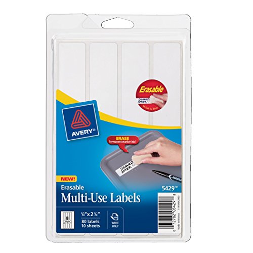 Avery Erasable Labels, Laser/InkJet, .875 x 2.875 inches, White, Permanent, Pack of 80 (5429)