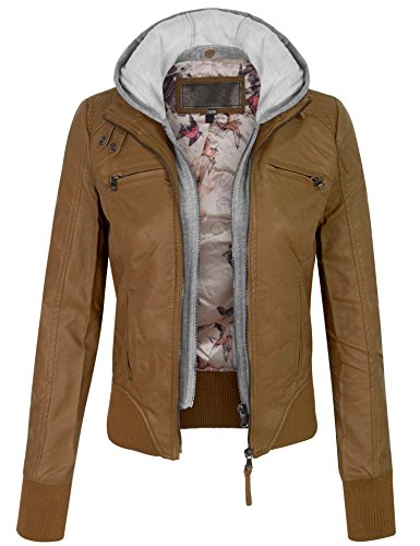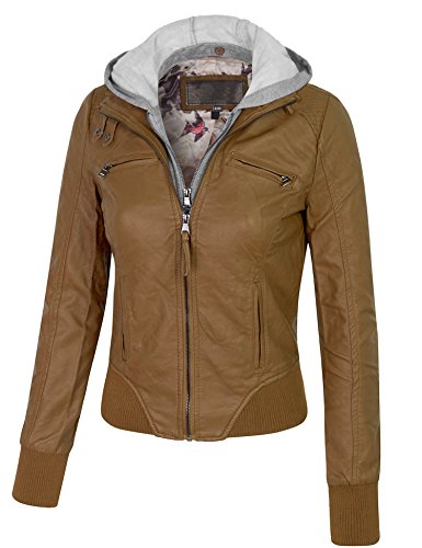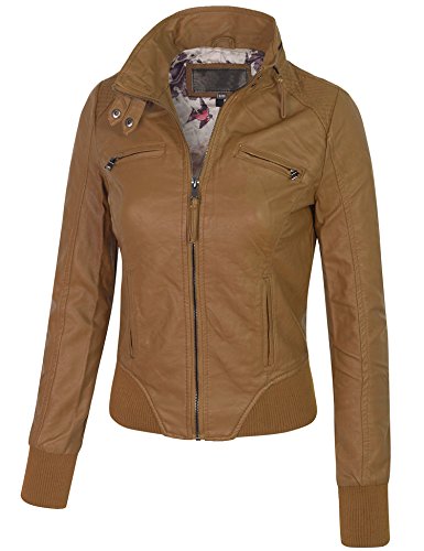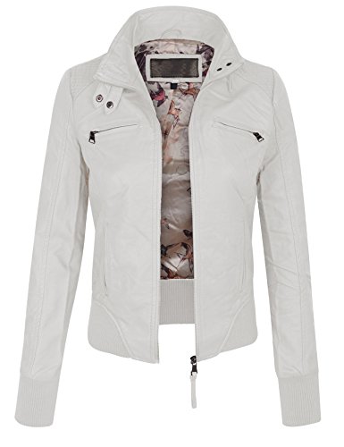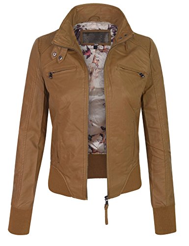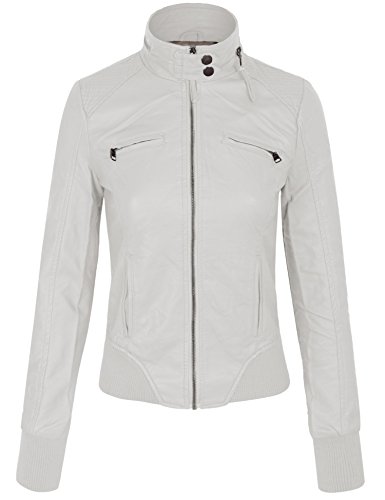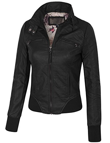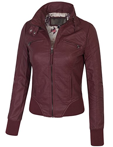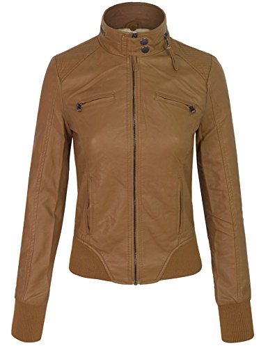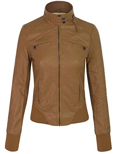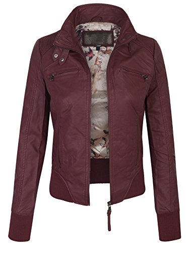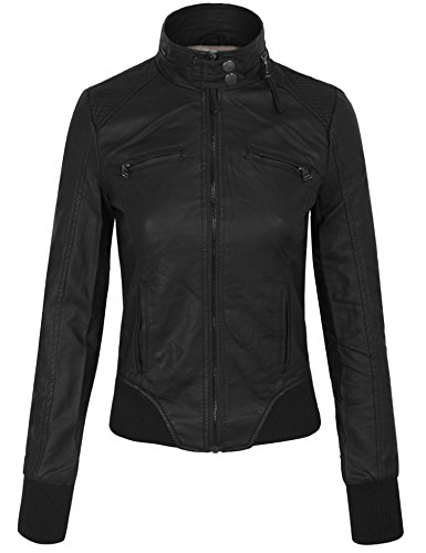 | (KOGMO)/Women/Outerwear/DIRECT FROM USA/KOGMO Womens Faux PU Leather Quilted Zip Up Casual Bomber Jacket |