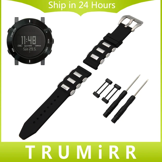 | [해외] 24 미리메터 실리콘 고무 시계 밴드 + 러그 어댑터 + 도구 suunto 코어 316l 브러시 스테인레스 스틸 버클 스트랩 손목 벨트 팔찌 |