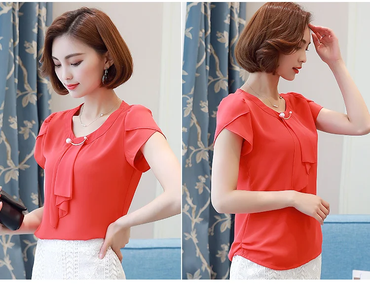 Model Number:New fashion short sleeve chiffon blouse Tops