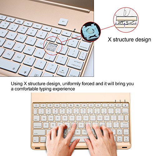 Slim, Comfortable, USB Rechargeable, Wireless Bluetooth iPad Air 2 Keyboard - with optimized key design for comfortable typing experience, the thickness of key only 4mm, super light for carry, one single charge gives you up to 60 hours of working time using keyboard, using Fn+C to connects the keyboard to your iPad automatically