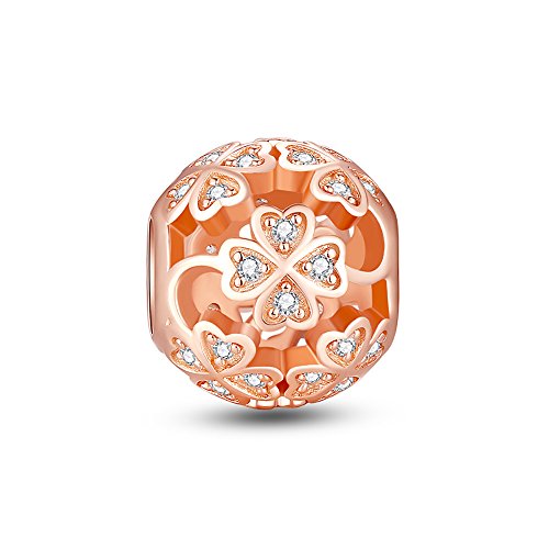Glamulet Art - Four Leaf Clover Rose Gold Charm -- 925 Sterling Silver