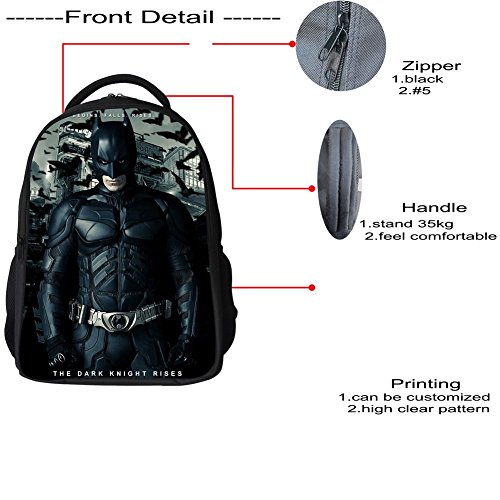 -. Brand : Jeremysport -. Color : Black -. Department : boys -. Feature : Made with polyester fabric. Lightweight fabric can release kids shoulder burden. / Approx Dimensions:L11"*H16.5"*W5.5" inch (L28*H42*W14cm); Weight is about 0.35KG good for child. / Interior multiple compartments and exterior water bottle pockets on both sides. / This school bag backpack can contain a 16-inch-computer. Best choice for you in using. / 3D Batman pattern which is a best gift for our children to go to school. -. PackageQuantity : 1 -. ProductGroup : Apparel -. ProductTypeName : LAGE -. Size : 16.5 Inch -. Title : Batman Backpack Children School Bag