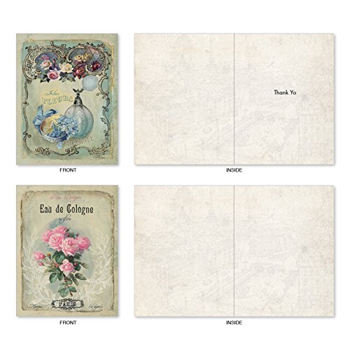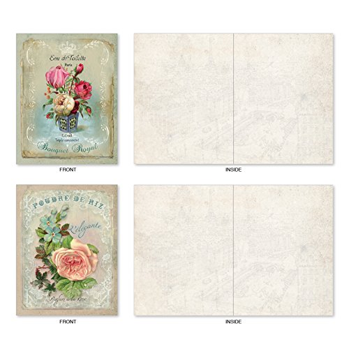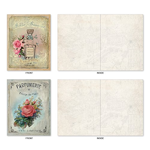 M6472OCB Scentiments: 10 Assorted Blank All-Occasion Note Cards Featuring Vintage Turn of the Century French Perfume Advertisements, w/White Envelopes.