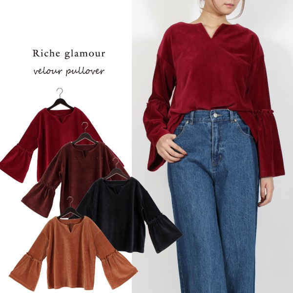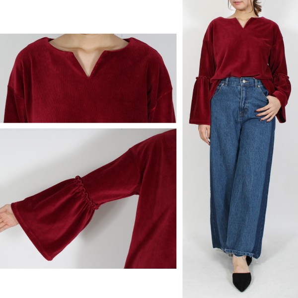 ベロアリブ フレアスリーブ プルオーバー☆
