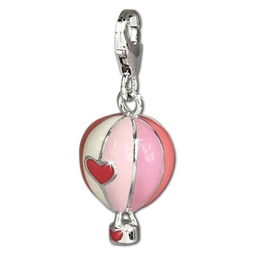 -. Title : SilberDream Charm pink and white enameled hot-air balloon 925 Sterling Silver Pendant FC672