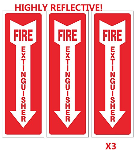 (3 Pack) Highly Reflective Fire Extinguisher Sign - Self Adhesive Vinyl Decal - Indoor & Outdoor Emergency Use