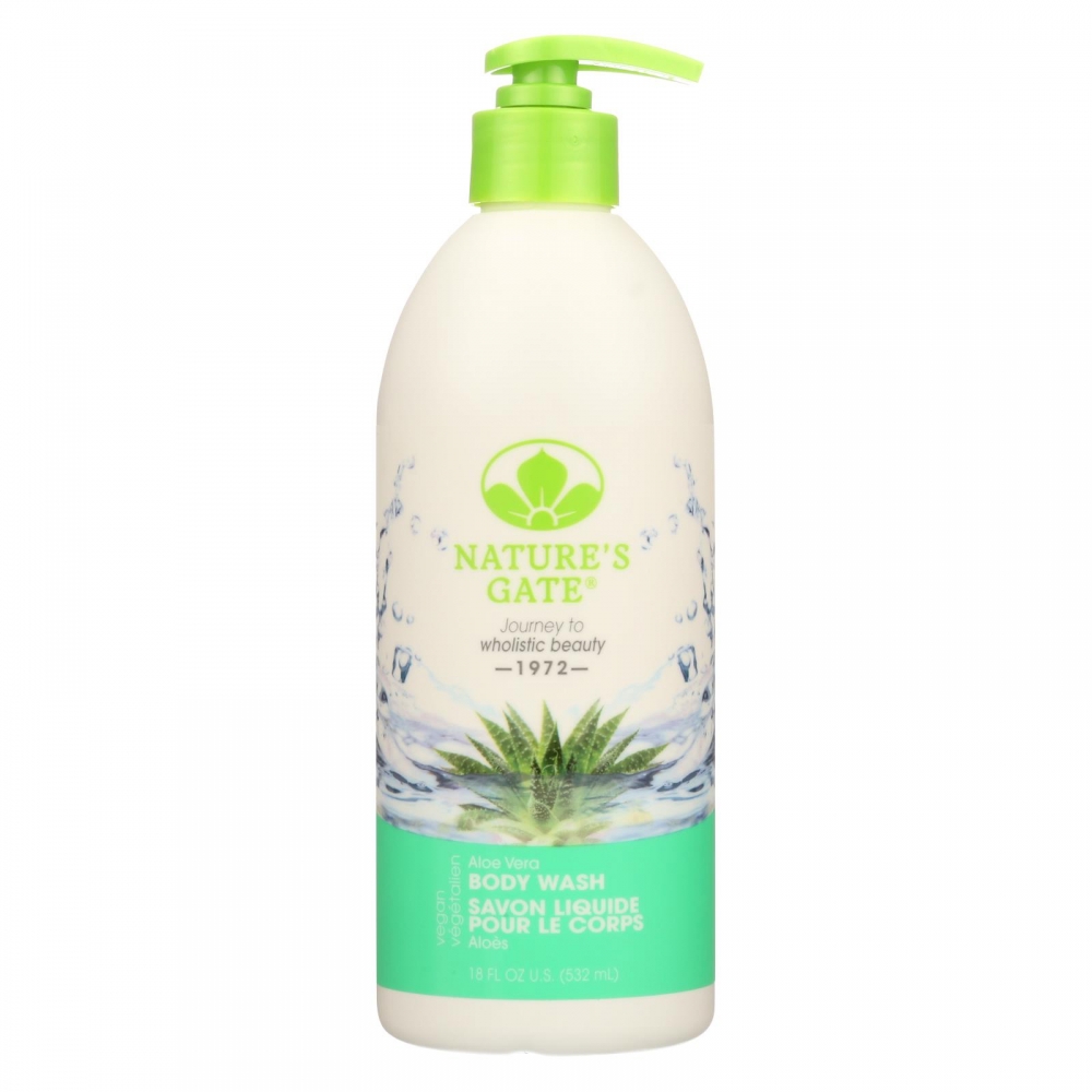 Nature's Gate Aloe Vera Velvet Moisture Body Wash Description: NEW! Soften Skin Paraben Free 7 Natural Moisture Boosters Nature's Gate Aloe Vera Velvet Moisture Body Wash gently cleanses while Cucumber and Aloe soothe skin. This luxurious, lightly scented formula is enriched with our exclusive 7 skin conditioning moisturizers to leaves your skin silky soft and radiant. Exclusive moisture blend includes Shea Butter, Sweet Almond Oil, Apricot Kernel Oil, Soybean Oil, Sodium Hyaluronate, Vegetable Glycerin and Vitamin E. Cucumber and Aloe Vera soothe skin Mallow Extract has anti-inflammatory benefits Sodium Hyaluronate binds moisture to skin and helps to prevent moisture loss Shea Butter hydrates and nourishes skin Free Of Paraben, sulfate, phthalate, EDTA, biodegradable cleansers. Produced without animal testing and with no animal byproduct. Disclaimer These statements have not been evaluated by the FDA. These products are not intended to diagnose, treat, cure, or prevent any disease. Ingredients : Water, Sodium Cocoyl Isethionate, Cocamidopropyl Betaine, Glycerin, Disodium Cocoamphodiacetate, Cocamidopropylamine Oxide, Aloe Barbadensis (Aloe Vera) Leaf Extract, Sldium Hyaluronate, Butyrospermum Parkii (Shea Butter), Prunus Amygdalus Dulcis (Sweet Almond) Oil, Prunus Armeniaca (Apricot) Kernel Oil, Glycine Soja (Soybean) Oil, Tocopheryl Acetate (Vitamin E), Phospholipids, Glycolipids, Soja (Soybean) Sterols, Chamomilla Recutita (Matricaria) Extract, Glycyrrhiza Glabra (Licorce) Root Extract, Cucumis Sativus (Cucumber) Extract, Malva Sylvestris (Mallow) Extract, Phenoxyethanol, Glyceryl Undecylenate, Sodium Lauroyl Sarcosinate, Citric Acid, Fragrance. Size : 18 FZ Pack of : 1