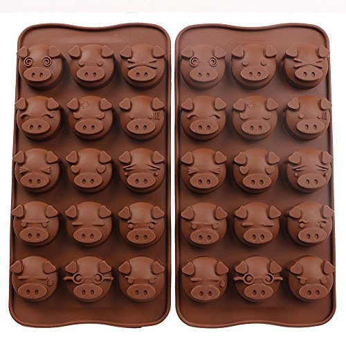 Webake 2 Pack Silicone Chocolate Molds, 15 Cavity Candy Molds, Mold for Chocolate (Pig shape)