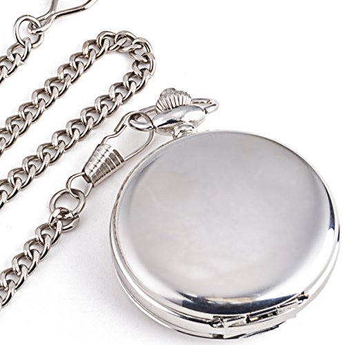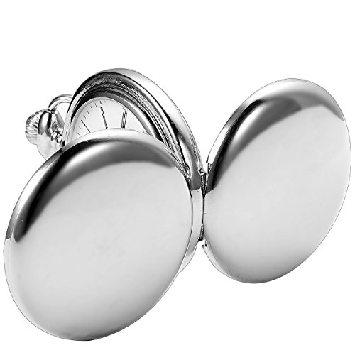 -. Feature : 1. Double case hand wind mechnial silver pocket watch, no need to use battery, twisting the top button on the spin, tightening a walk for 24 hours / 2. Pocket watch comes with chain and gift box, Good choice for birthday present, Graduation, Christmas, bachelor party, wedding, or groomsmen gifts! / 3. Attractive vintage style design, It's an eye-catcher at the suit, pants or dress, Suitable for business events or casual occasion / 4. Unique skeleton dial, Add undeniable style and class to your daily life and fashion with a classic Pocket Watch / 5. 100% brand new with excellent workmanship, Precise mechanical movement pocket watch