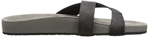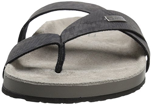 Product DescriptionA stylish slip on sandal with synthetic leather criss crossing straps and toe post WNA a super comfortable molded suede footbed.0