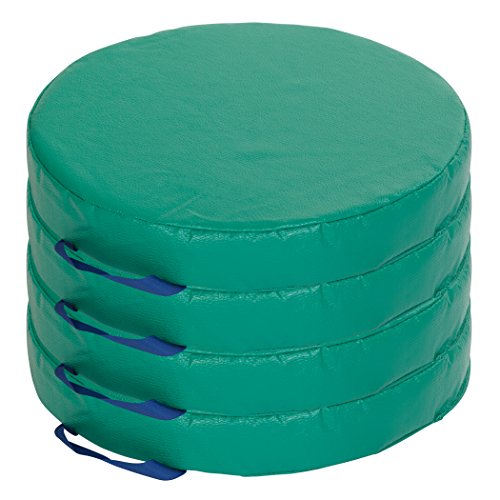 - Round 4-piece foam seating cushions in bright primary and secondary colors; ideal for daycare and preschool age children