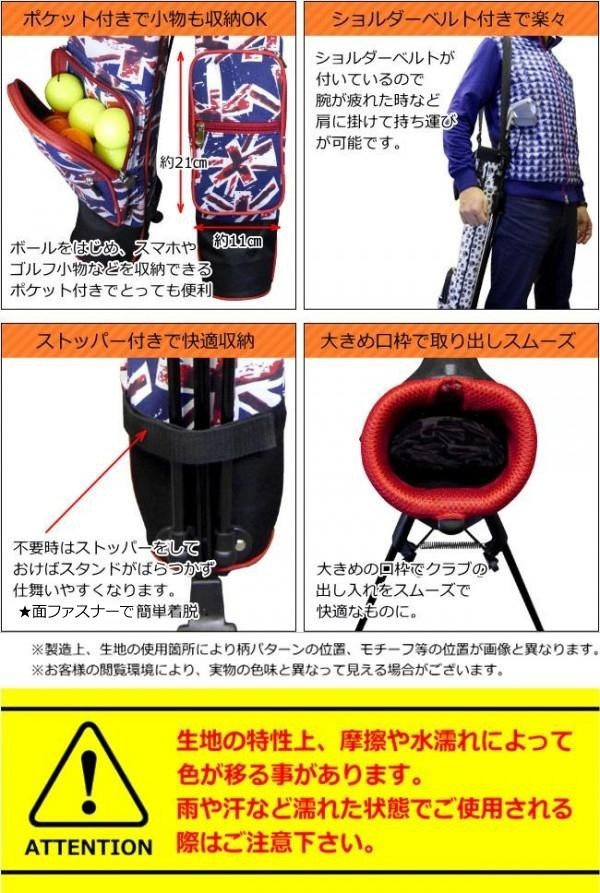| 仕様 | クラブ収納本数:4~5本収納可能 フック式ハンドル グローブホルダー&フック付き 小物ポケット付き ショルダーベルト付き スタンドストッパー付き |