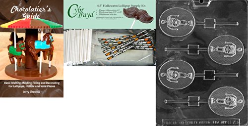 Cybrtrayd "Skeleton Lolly" Chocolate Mold with Chocolatier's Bundle, Includes 25 Lollipop Sticks and 25 Cello Bags