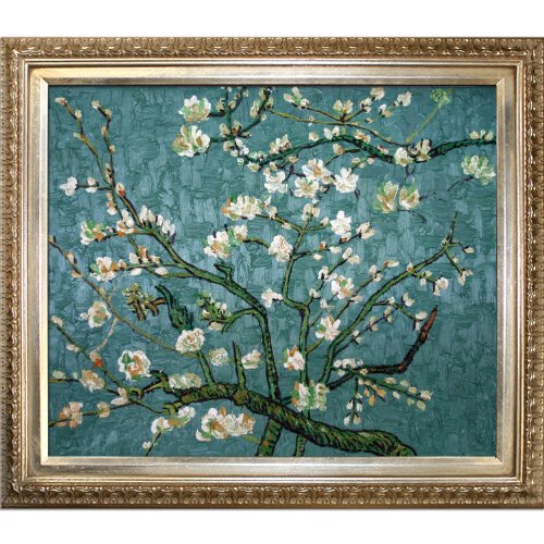 20-inch by 24-inch oil painting on canvas hand painted oil reproduction of a famous van gogh painting, branches of an almond tree in blossom. The original masterpiece was created in 1890. Today it has been carefully recreated detail by detail, color by color to ne