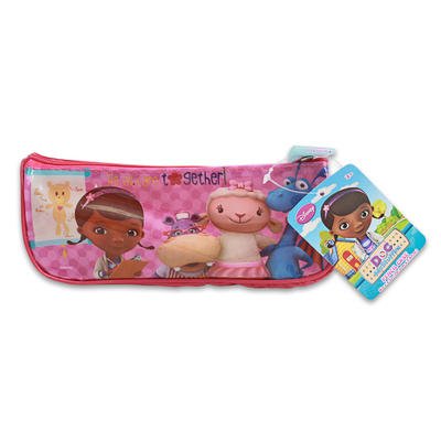 Disney Doc McStuffins Toys and Gifts: Doc McStuffins Bag, Doc McStuffins Pencil Pouch, and a 3” Glitter Barrette Hair Accessory for Girls - 3 Item Bundle
