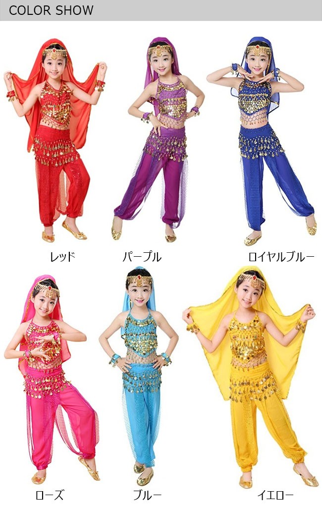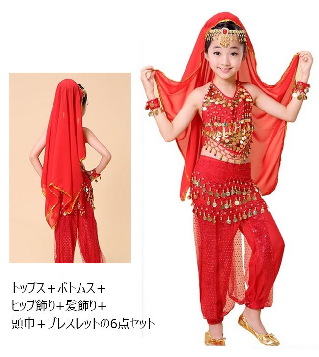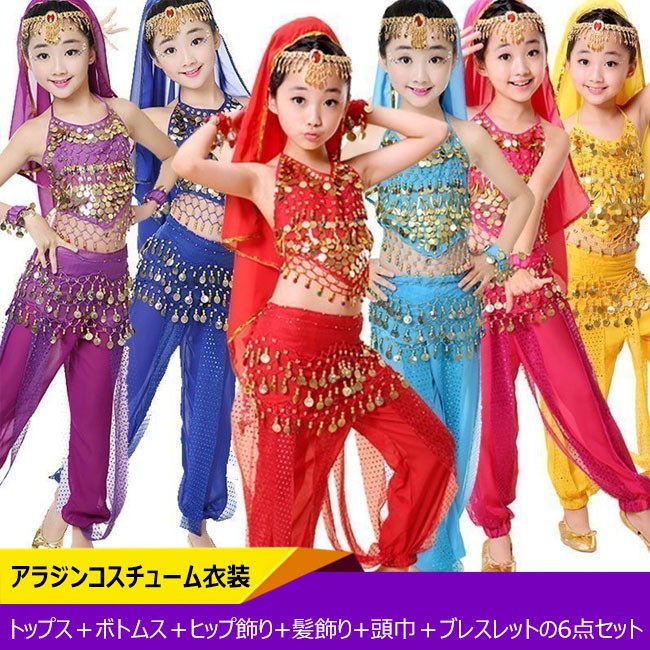 | 商品名 | 6点セット ベリーダンスセット アラビアン衣装 女の子 アラジン 子供服 アラジンコス スパンコール ダンス衣装 コスプレ 全身セット 上下セット トップ スカート |