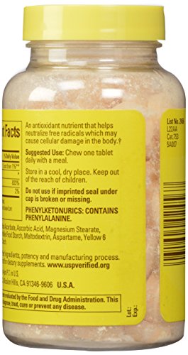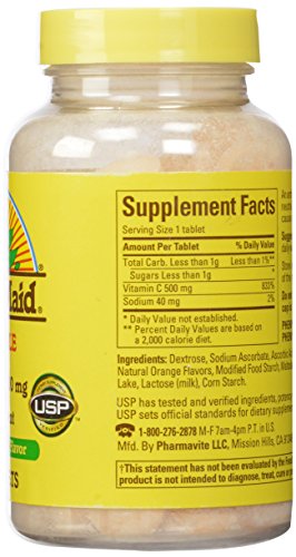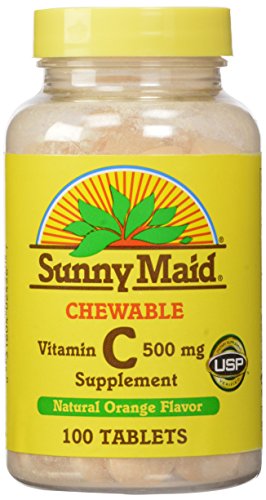 -. Binding : Health and Beauty -. Brand : Pharmavite -. Feature : Recommended as part of daily regimen for winter wellness and immunity / May protect against heart disease and other cholesterol-related health issues / Offers antioxidant benefits for lungs and lens of the eye / Please read all label information on delivery -. Label : Pharmavite -. Manufacturer : Pharmavite -. ProductGroup : Health and Beauty -. ProductTypeName : HEALTH_PERSONAL_CARE -. Publisher : Pharmavite -. Studio : Pharmavite -. Title : Sunny Maid Vitamin C, 500 mg, Natural Orange Flavor, 100-Count Chewable Tablets