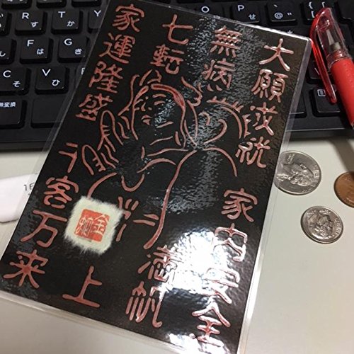 Cutout picture Japanese art collage KIRIE “Kanji characters that bring good fortune & White Snake Kannon” Made of Washi(Japanese paper) Scarlet, 4” x 6”