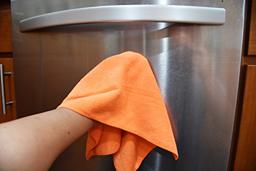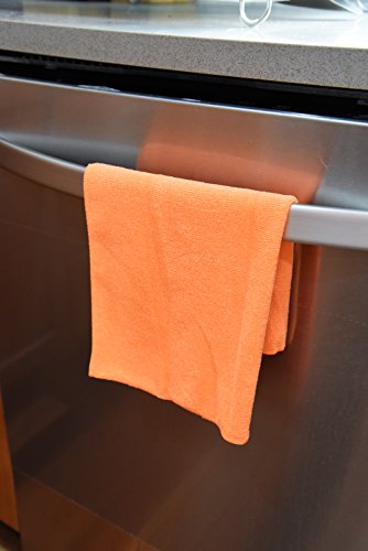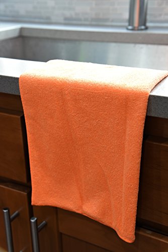 Dri Professional Extra-Thick Microfiber Cleaning Cloth - 16 in x 16 in - 24 Pack (Orange) - Ultra-absorbent, quick drying, chemical-free cleaning
