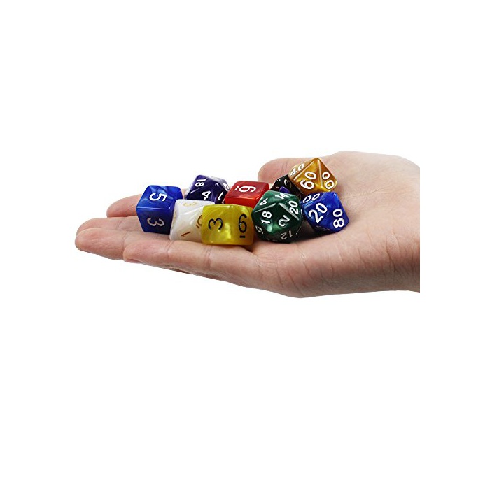각색 세트가 D4x1,D6x1,D8x1,D10x1,D12x1,D20x1,D%(percentage 다이스)x1합계7개를 포함합니다.작은 백의 사이즈가 약7*9cm,커다란 백의 사이즈가 약18*23cm.