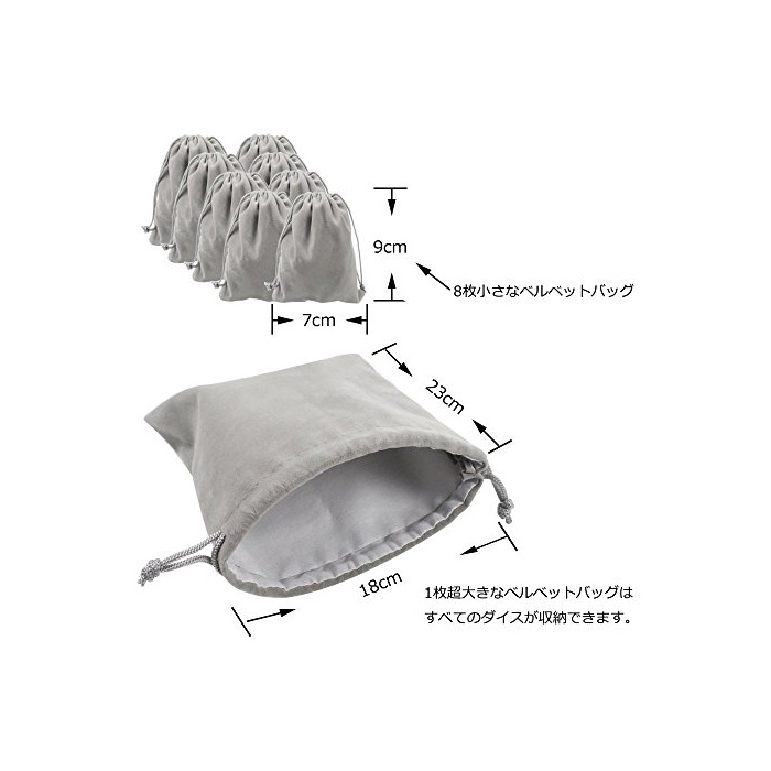 초커다란 벨벳 백이 모든 다이스를 수납에 옵니다.완벽한 다면체 다이스가 여러가지 보드 게임에 적용되고, 파티나 기프트나 수업 등에 이용되는 것 를 할 수 있습니다.
