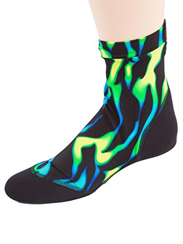 Sand Socks soft-soled snorkeling booties (youth/adult) Large Green lightning