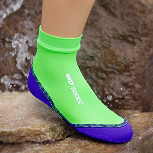 Barefoot Non Slip Water Sports Aqua Socks for All Beach Activities. Great Grip Socks for Rough or Wet Surfaces. Snug and Comfortable for Yoga or All Other Exercisers. (Lime Green Large Kids Toddlers)