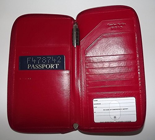 -. Title : Italia Leather RFID Protected Zip Passport & Credit Card Travel Wallet Red