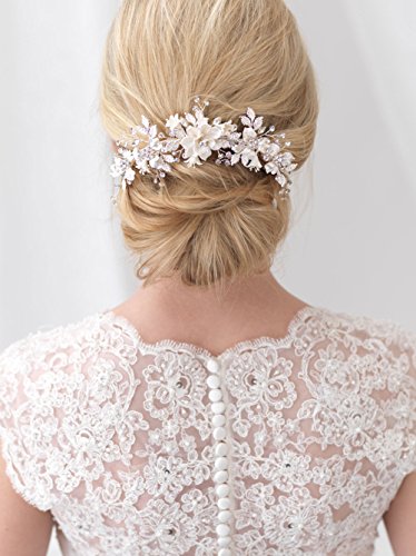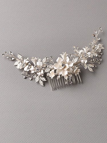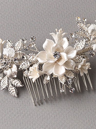 USABride Bridal comb offers a touch of nature inspired beauty to your bridal look This headpiece features ivory enamel flowers accented with frosted leaves and...