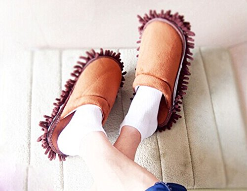 -. Feature : One size fits most. / Cleans faster, easier and better; slippers can go where mops cannot. / magic tape pad attaches/detaches cleaning cloth from slipper. / When you are too lazy to Mopping the floor, Wear slippers into it, then,it can help you to mopping the floor. / Great idea that brings revolution to household chores, clean the floor while you and your guests walk.