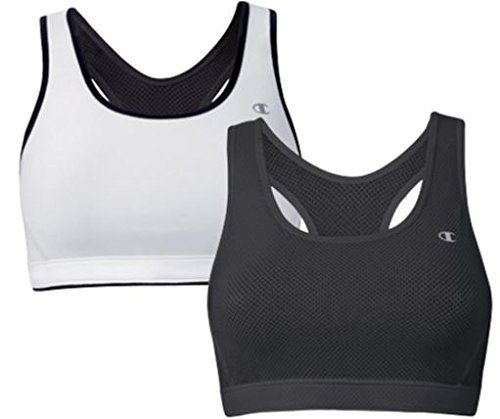 2 pack reversible sports bras with double dry technology to help keep you cool and dry. Reverses to breathable mesh. Signature keyhole racerback for ventilation. Smart sizes to shape and fit you: Small fits 32A/B/C/D, 34A/B; Medium fits 34C/D, 36A/B/C; Large fits 36D, 38A/B/C; XLarge fits 38D, 40B/C