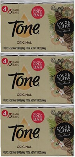 Tone Bath Bars Cocoa Butter, Original, 3.5 Oz, 4 Count, (Pack of 3) 12 Bars Total