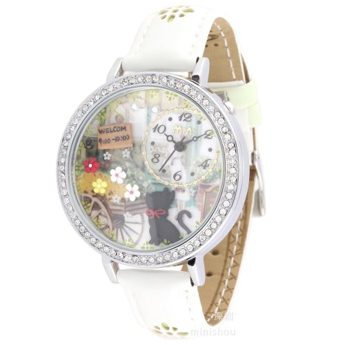 -. Title : ufengke-女性/女性/少女-グリーンストラップ猫の花歓迎テーマダイヤルのための贅沢素敵な水晶腕時計