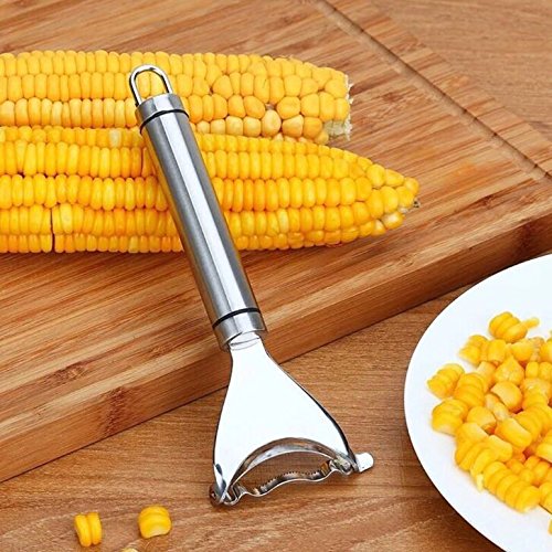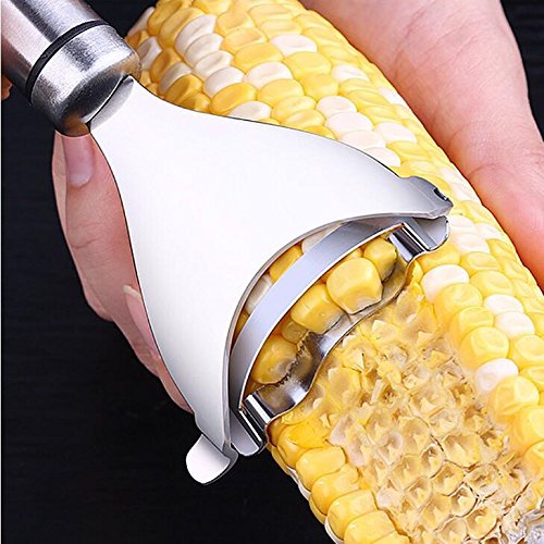 CORN STRIPPING TOOL COMFORTABLE AND CONVENIENCE The peeler has a smooth handle that makes for a nice grip and there is a hole in handle for convenient hanging storage.Corn thresher has a smooth handle that makes for a nice grip. Easy to cut corn, and easy to clean. convenient storage.