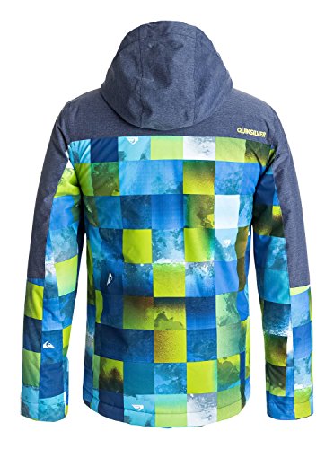 Studio : quiksilver Publisher : quiksilver Binding : Misc. Product Description Snow jacket for boys 8-16. Features include: waterproofing: 10K Quiksilver DryFlight® technology, fabric: polyester Oxford weave, fit: regular, insulation: Warmflight® [Fill weight: 120g body, 80g sleeves, 60g hood], lining: taffeta and features: key clip. 0