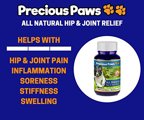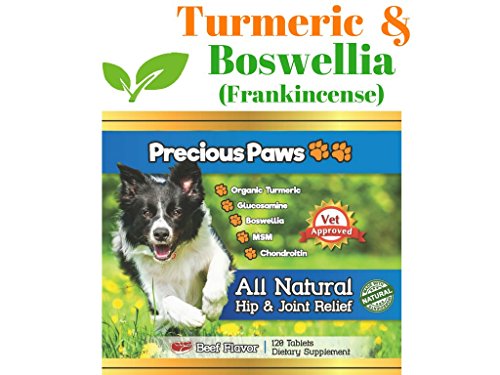 -. Title : Precious Paws All Natural Hip & Joint Pain Relief for Dogs with Organic Turmeric, Frankincense, Glucosamine, MSM, and Chondroitin. 120 Beef Flavored Tablets