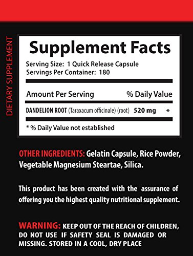 Studio : VIP VITAMINS Publisher : VIP VITAMINS Binding : Health and Beauty Product Description Dandelion pure - dandelion root extract 520mg - digestive health - 2 bottle 360 capsules liver support - dandelion root extract 520mg: has been shown to support liver health in dealing with toxins and reestablishing hydration and electrolyte balance. It also increases the release of bile. Dandelion also contains protein, more than spinach. It has been eaten for thousands of years as a food and used as a herbal remedy to fight off fatigue, depression, improve skin health and provide blood pressure support. anti-oxidant - dandelion root extract 520mg: is rich in antioxidants that provide cells support, slowing down the aging process in them. Our product is also rich in vitamin c and vitamin a as beta-carotene and increases, which provides strong liver support. blood pressure support - dandelion root extract 520mg: as a diuretic, dandelion increases urination which is beneficial for blood pressure. The fiber and potassium in dandelion also may have beneficial effects on it. anti-bacterial - dandelion root extract 520mg: can be beneficial for supporting healthy cholesterol levels, gallbladder by increasing bile production. Dandelion contains essential fatty acids, antioxidants, and phytonutrients that have strong anti-inflammation properties. Our product may boost immune system and help fighting off harmful organisms. 0