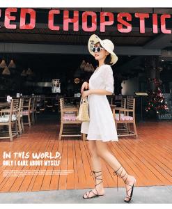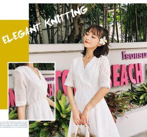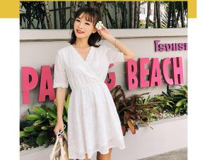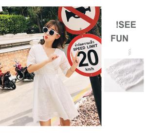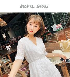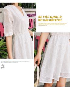 コットンレースワンピース 半袖ワンピース ミニ丈ワンピース 膝上 フラワー刺繍 春夏 フレアスカート 白ワンピ
