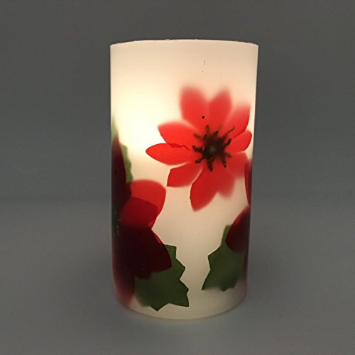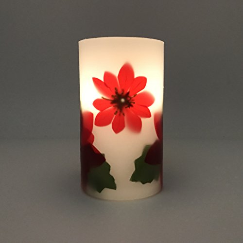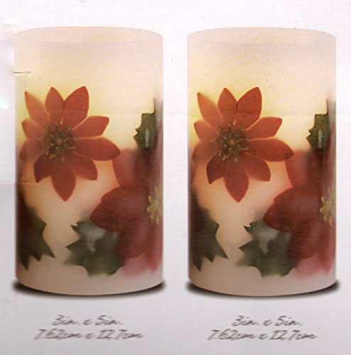 Christmas Poinsettia Real Wax LED Flameless Candles: Winter Holiday Design, 2 Piece Set with Daily Timer