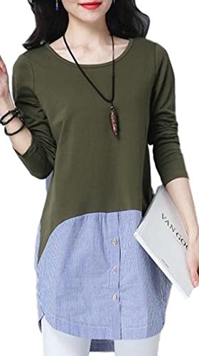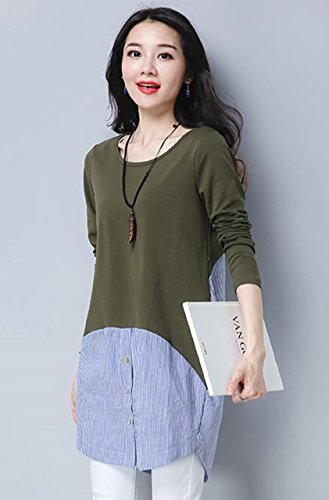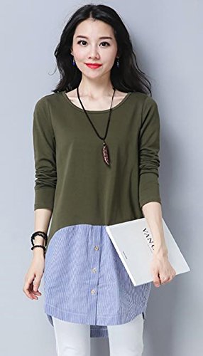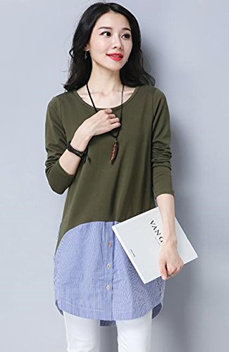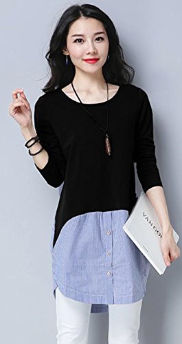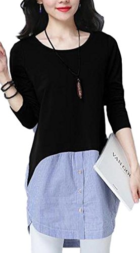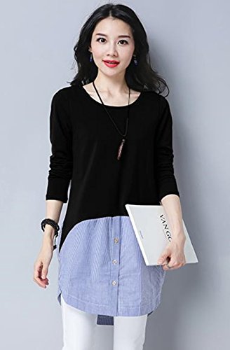 -. Feature : まるで重ね着のようなオシャレさん。ニットにストライプ柄のシャツを重ね着しているかのようなデザイン。腰から裾に向かって異素材を覗かせて、大人のアクセントのデザイン。一枚ですっきり着られるからコーデに悩むことも心配なし。大人可愛いフェイクトップスです。 / ラフさと女性らしさを兼ね備えたアイテム。普通のニットでは、物足らなかったり、少し手抜き感が出てしまったりするけれど、異素材を重ねたフェイクデザインで手抜き感もなく、オシャレができます。ロング丈なのでヒップラインを自然とかくしてくれるので、スキニーパンツなどと合わせれば、メリハリのあるスタイルに。 / 今期、大流行の2色コンビを取り入れることでより一層お洒落感が味わえ、セレブコーデにも!デイリーコーデに大活躍してくれること間違いなし。 / ウェストから裾にかけて異素材を使用することで、コーデをより一層個性的にリードしてくれ、エレガントな演出も実現でき、コーデ次第で長く使っていただけれるおススメの一枚です。 / 【 Mサイズ 】着丈83㎝/肩幅35㎝/バスト88㎝/袖丈58㎝ 【 Lサイズ 】着丈84㎝/肩幅36㎝/バスト92㎝/袖丈59㎝ 【 XLサイズ 】着丈85㎝/肩幅37㎝/バスト96㎝/袖丈60㎝ 【素材】コットン/ポリエステル