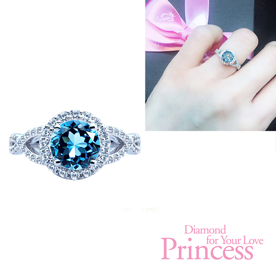 1ct런던블루 토파즈가 셋팅되어있으며 밴드 주변에는 White Cubic