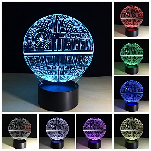 -. Title : Amazing 3D illusion Effect LED Night Light Death Star LED Desk Table Night Light Lamp 7 Color Change Acrylic Press Lamp Kids Children Holiday Gift Home Office Baby Room Decoration Night Light